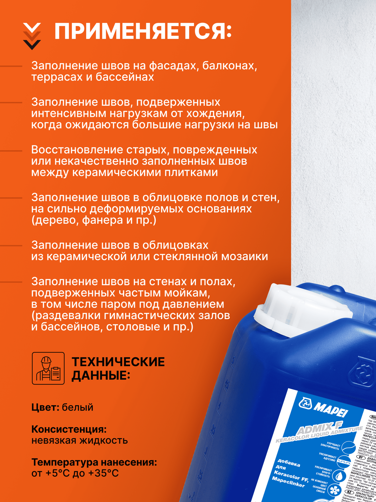 Купить Полимерная добавка MAPEI Admix F, 5 кг с доставкой по всей России. Полимерная добавка MAPEI Admix F, 5 кг: сравнение цен, характеристики, фото, актуальное наличие и цены.