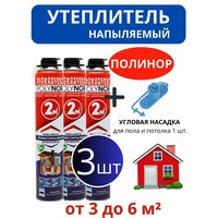 Купить Полинор напыляемый утеплитель с угловой насадкой 3 шт. Распыляемая пена в баллонах с доставкой по всей России.