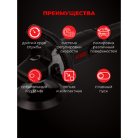 Полировальная машинка повышенной мощности и производительности ротационного типа с удобнымэргономичным хватом предназначена для профессиональных работ по лакокрасочному покрытию, стеклам ипрочим поверхностям.