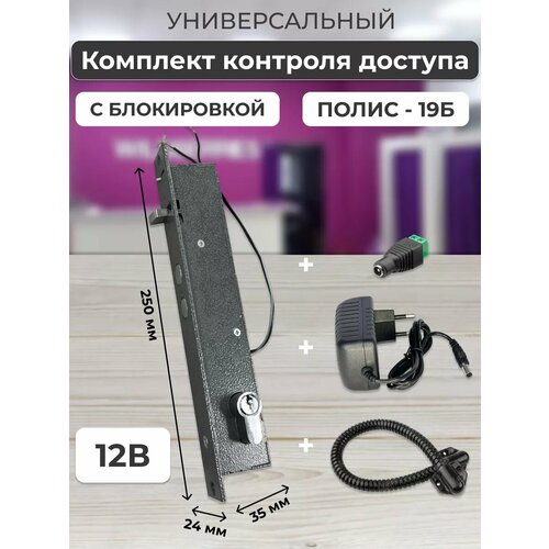 Краткое описание: Аналог Полис-19, с дополнительной функцией блокировки от закрывания. Врезной, на любую дверь, 12 В/0,8 А, изнутри и снаружи открывается ключом, диаметр засовов 16 мм, ход засова 14 мм, габаритные размеры 250х40х28 мм, врезная часть 220х37х24 мм