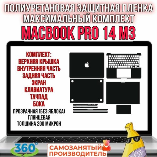 Купить Полиуретановая защитная бронепленка для MacBook PRO 14 M3 Максимальный комплект Прозрачное глянцевое с доставкой по всей России.