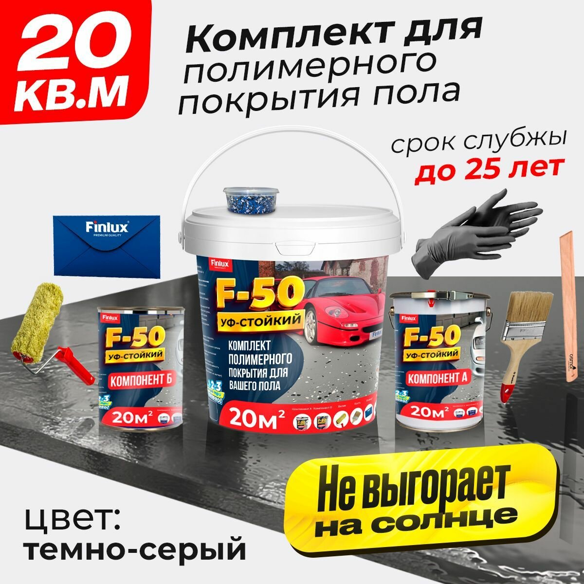 Комплект для полимерного покрытия пола Finlux F-50 KrasPol, темно-серый, 20 м2, быстросохнущий: сравнение цен, характеристики, фото, актуальное наличие и цены.