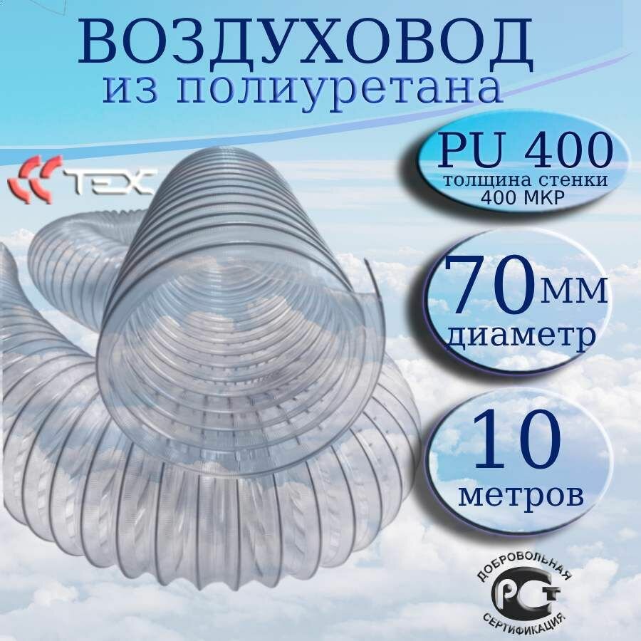 Полиуретановый гибкий воздуховод PU-400-70/10 армированный прозрачный шланг диаметр 70 мм, длина 10 метров. Гибкая гофра для аспирации и стружкоотсоса: сравнение цен, характеристики, фото, актуальное наличие и цены.