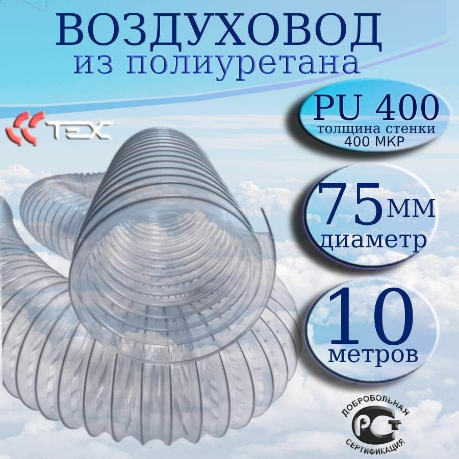 Полиуретановый гибкий воздуховод PU-400-75/10 армированный прозрачный шланг диаметр 75 мм, длина 10 метров. Гибкая гофра для аспирации и стружкоотсоса: сравнение цен, характеристики, фото, актуальное наличие и цены.