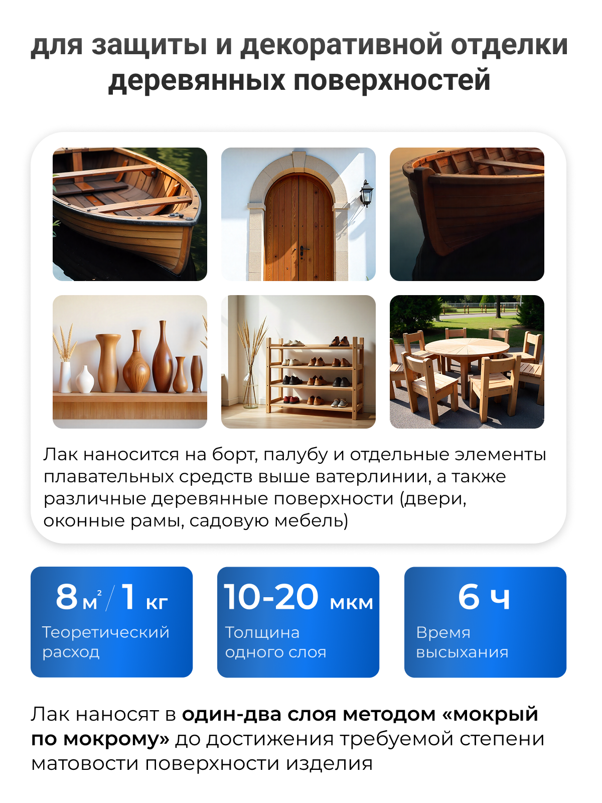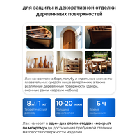 Расход лака составляет 1 кг на 7 м² плоской поверхности с толщиной 40 мкм сухого слоя.