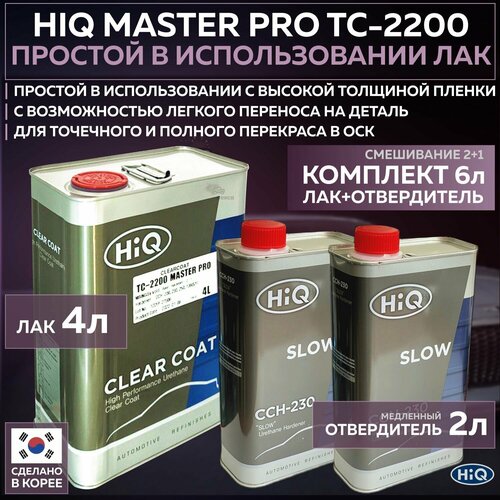 Полиуретановый прозрачный лак для автомобиля HIQ TC-2200 2:1 глянцевый, комплект с медленным отвердителем CCH-230, 4л + 2л: сравнение цен, характеристики, фото, актуальное наличие и цены.