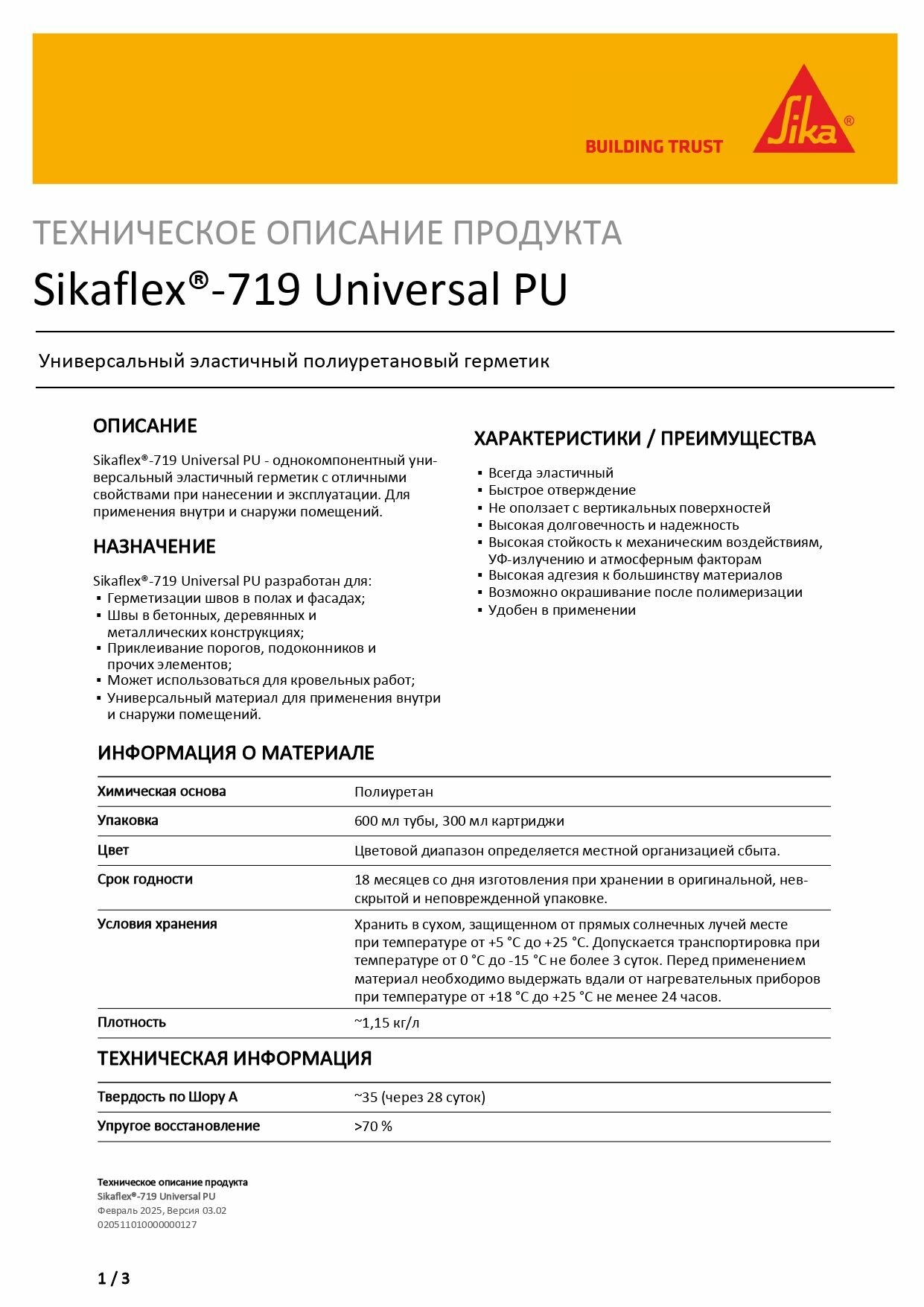 Полиуретановый универсальный герметик Sikaflex-719 Universal PU Construction, Темно-коричневый, 300мл: сравнение цен, характеристики, фото, актуальное наличие и цены.