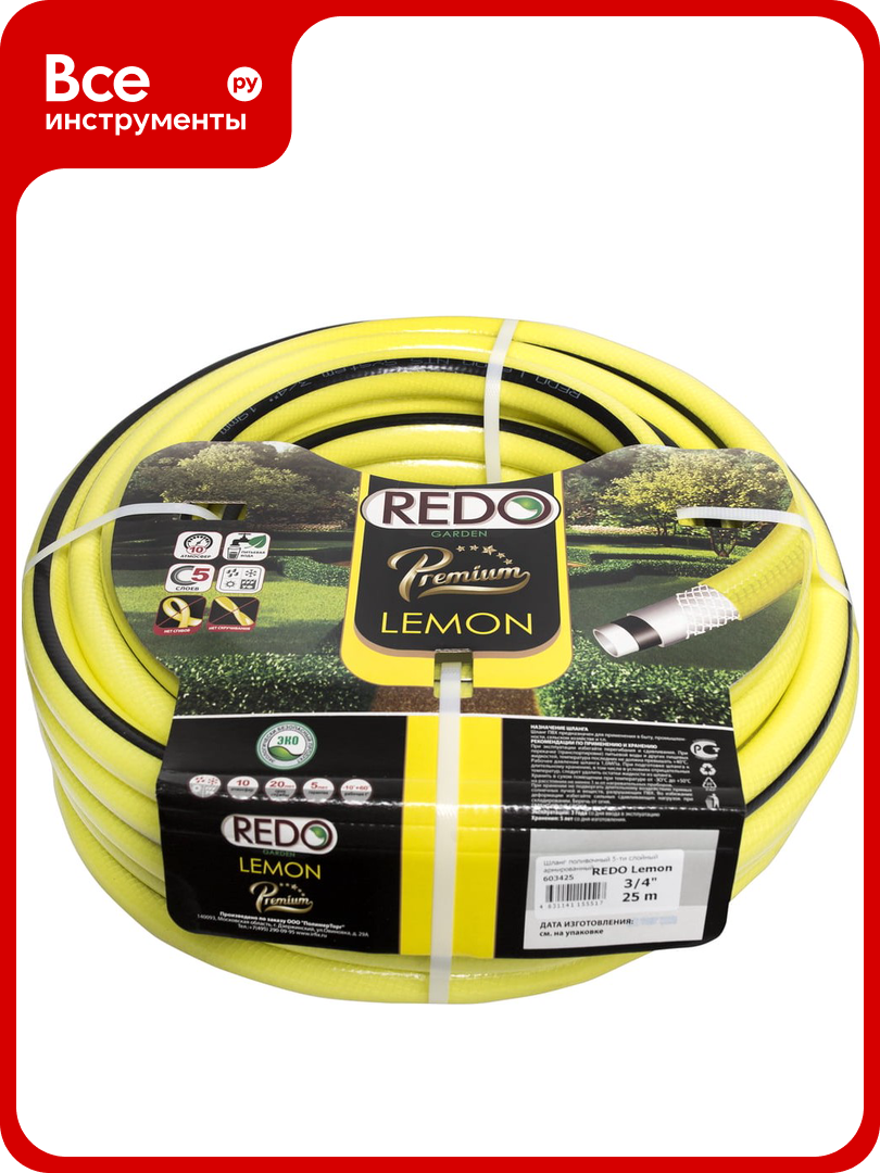 Купить Поливочный армированный шланг REDO Premium Lemon пятислойный, 3/4″, 25 м 603425 с доставкой по всей России. Поливочный армированный шланг REDO Premium Lemon пятислойный, 3/4″, 25 м 603425: сравнение цен, характеристики, фото, актуальное наличие и цены.