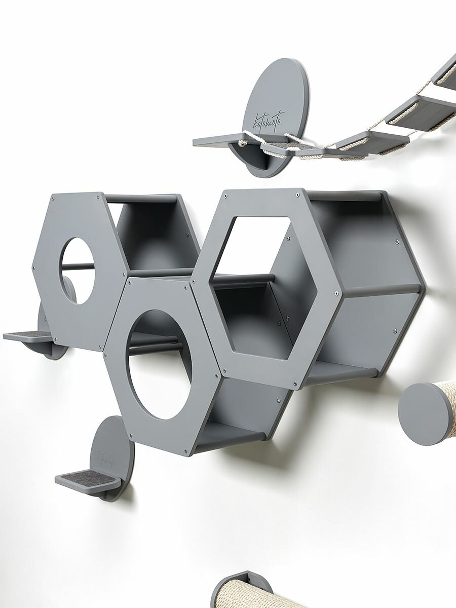 Полка для кошек настенная на стену Котомото / настенный игровой комплекс для кошек