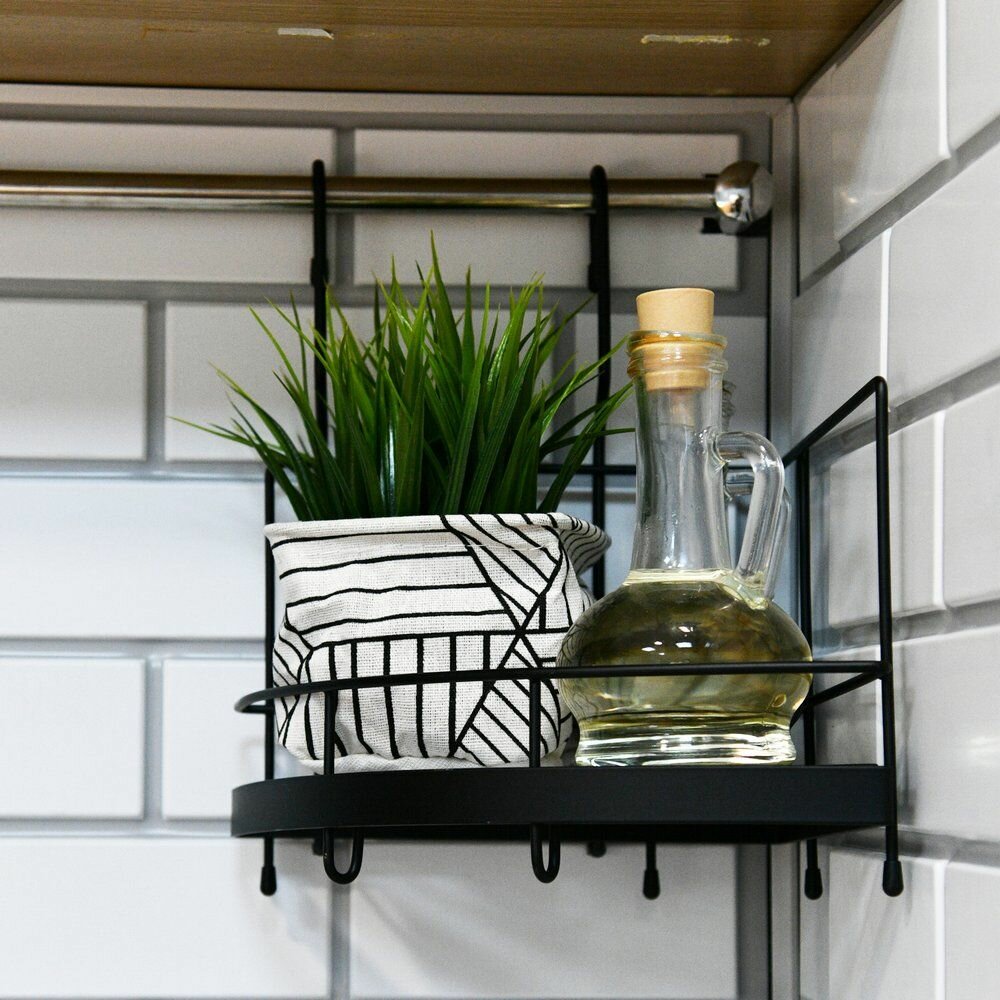 Полка для кухни Мультидом «Лофт», угловая навесная на рейлинг, 22,5х22,5х29,5 см (DA52-172): сравнение цен, характеристики, фото, актуальное наличие и цены.