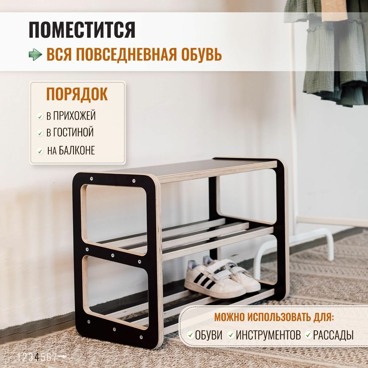 Этажерка интерьерная поможет вам не только хранить обувь, но и дополнительно использовать как поверхность для размещения ключей, сумок и других мелочей.