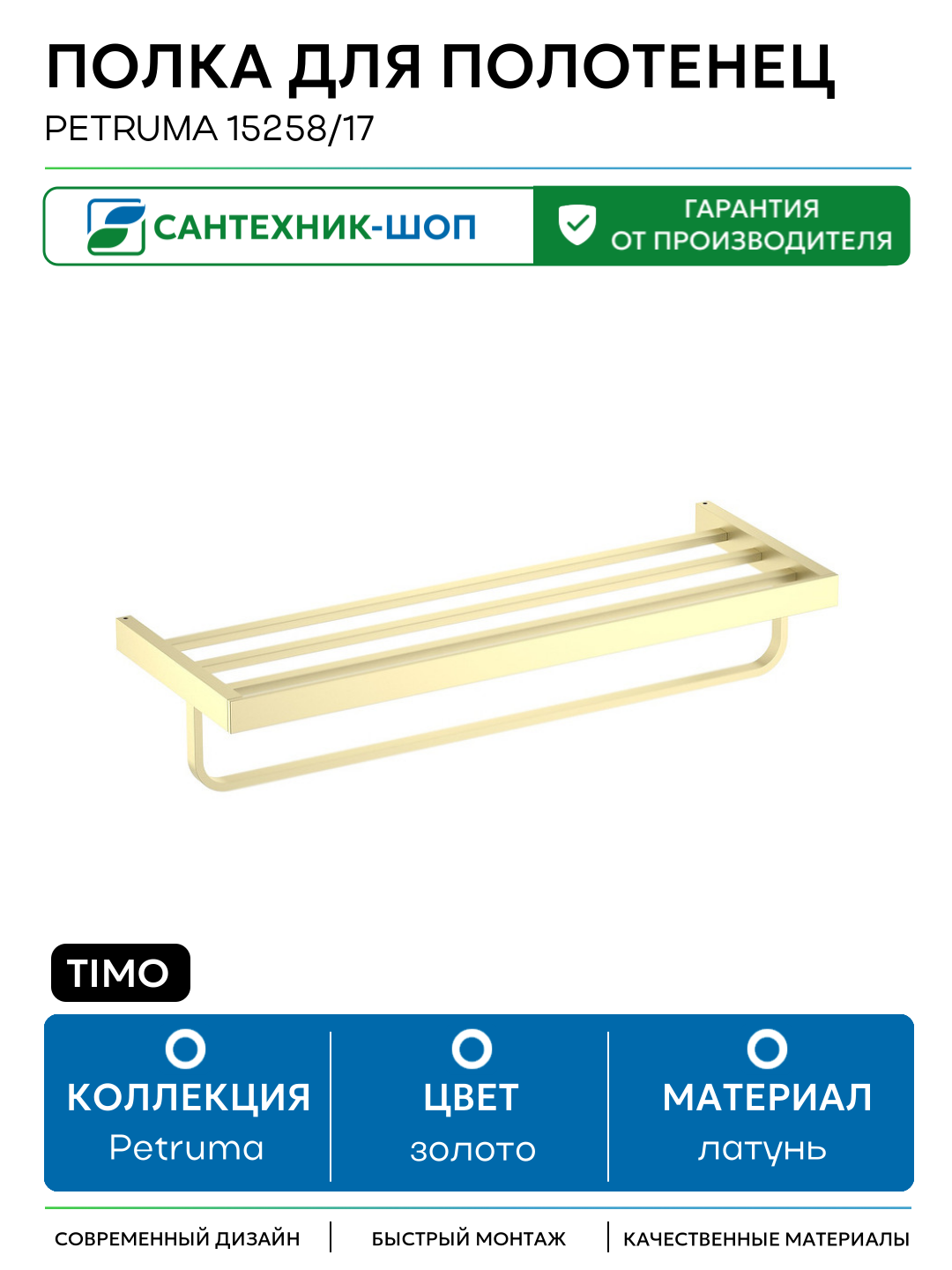 Полка для полотенец Timo Petruma 15258/17 Золото матовое латунь на стену: сравнение цен, характеристики, фото, актуальное наличие и цены.