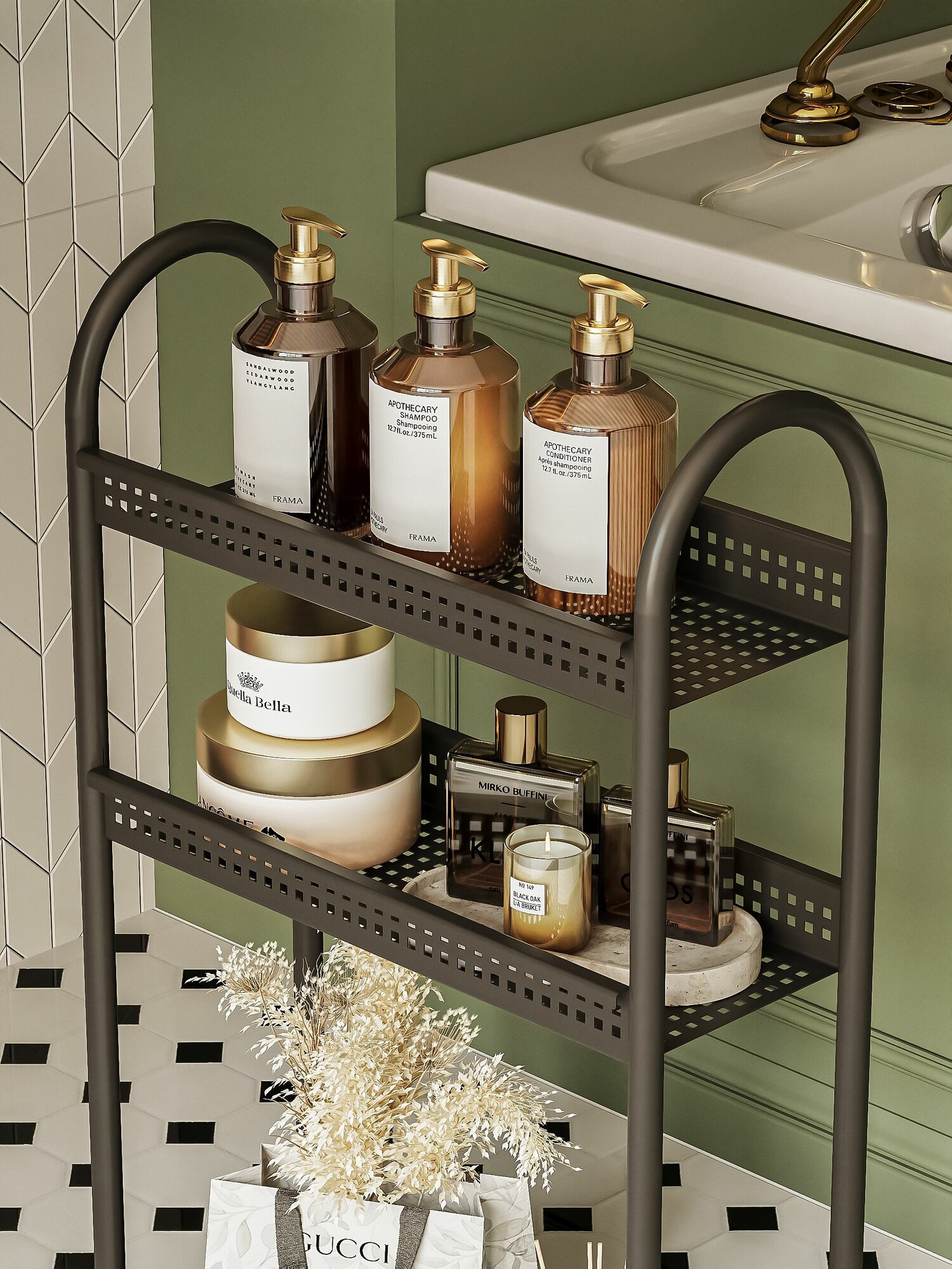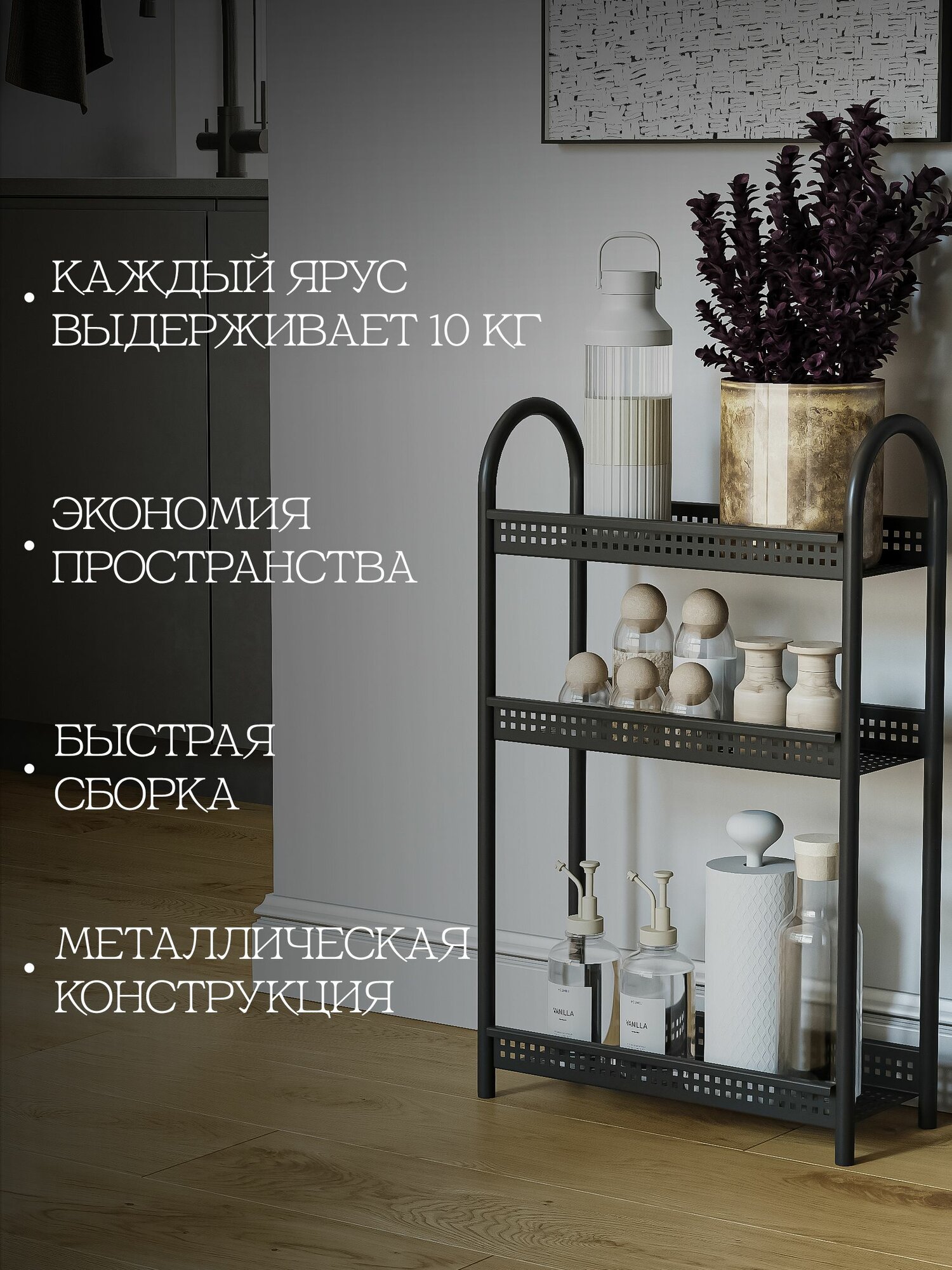 Полка для ванной напольная, Этажерка 3-х уровневая, стеллаж металлический для ванной, кухни и спальни; цвет черный: сравнение цен, характеристики, фото, актуальное наличие и цены.