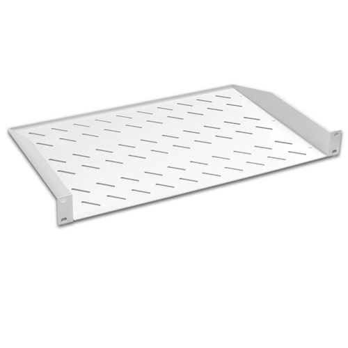 Изготовлена из высокочественной стали с порошковой окраской светло-серого цвета RAL 7035. Полотно полки - перфорированное, имеет глубину 300 мм. Полка крепится в 2 точках монтажным направляющим. Максимальная допустимая нагрузка - 30 кг.