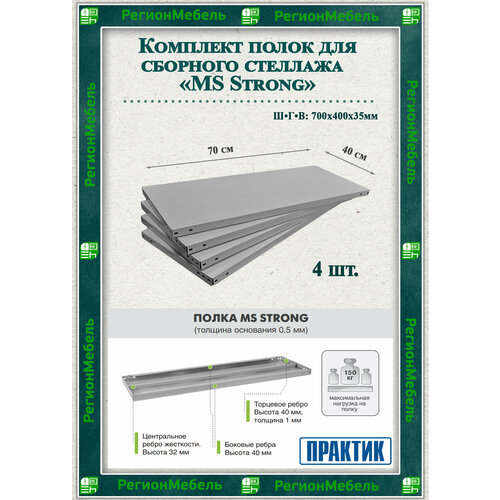 Купить Полка металлическая для стеллажа «MS Strong» (700х400мм) (4шт) (нагрузка до 150кг на полку) с доставкой по всей России.