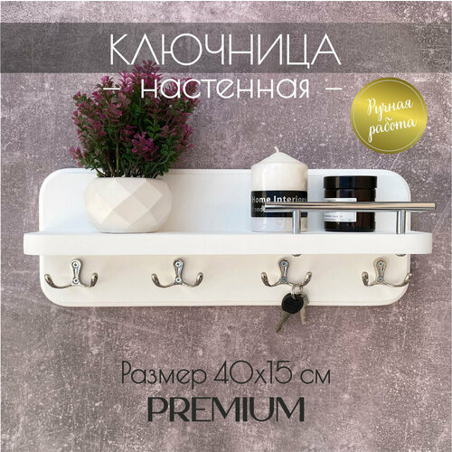 Купить Полка настенная с крючками белая Ключница на стену деревянная Вешалка для ключей с доставкой по всей России.