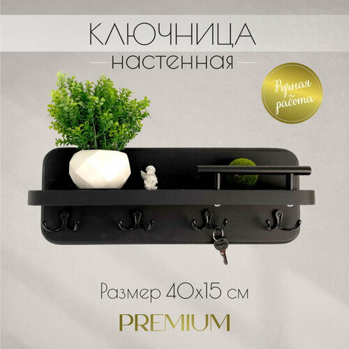 Купить Полка настенная с крючками черная Ключница на стену деревянная Вешалка для ключей с доставкой по всей России.