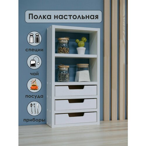 Купить Полка настольная деревянная узкая, 3 ящика с доставкой по всей России.