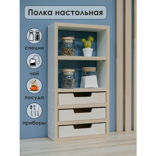 Полка на стол занимает мало места, но обеспечивает пространство для хранения вещей и мелких аксессуаров. Декоративная полка с ящиками подойдет для ванной комнаты и туалета, в ванную, для кухни, на кухню, для детской, гостиной, кабинета и офиса, для прихожей, для дома, дачи и бани. Нашу полку можно разместить над стиральной машиной или над унитазом в ванной и туалете.