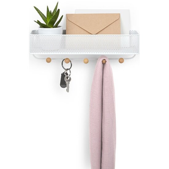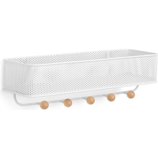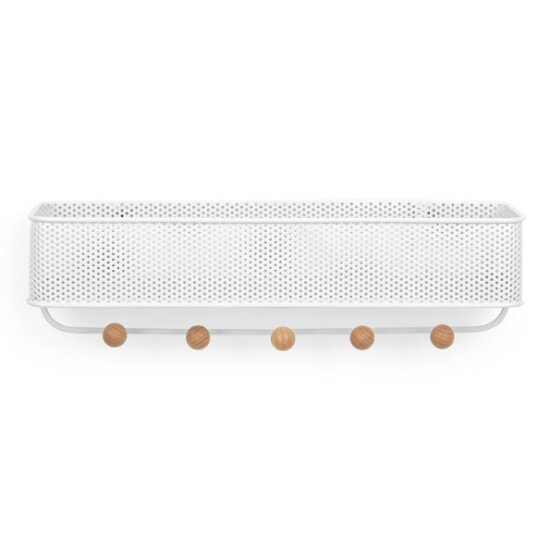 Настенный органайзер выполнен из перфорированного металла и натурального дерева. Пять крючков с круглыми деревянными наконечниками подойдут для ключей и аксессуаров. Сочетается по стилю с предметами из коллекции Promenade.