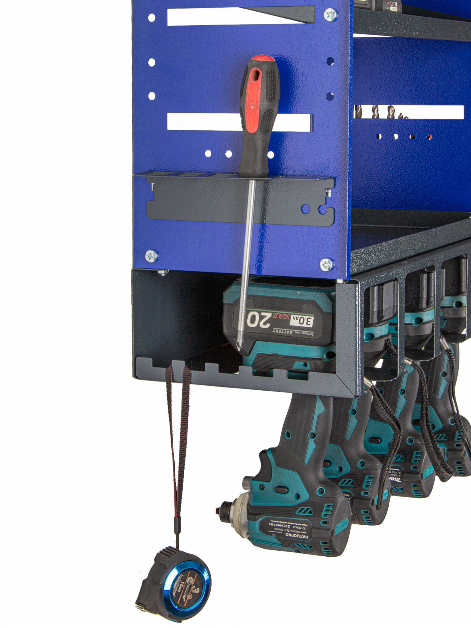 Купить Полка (подставка) для инструментов, аккумуляторов настенная синяя, металлическая с доставкой по всей России.