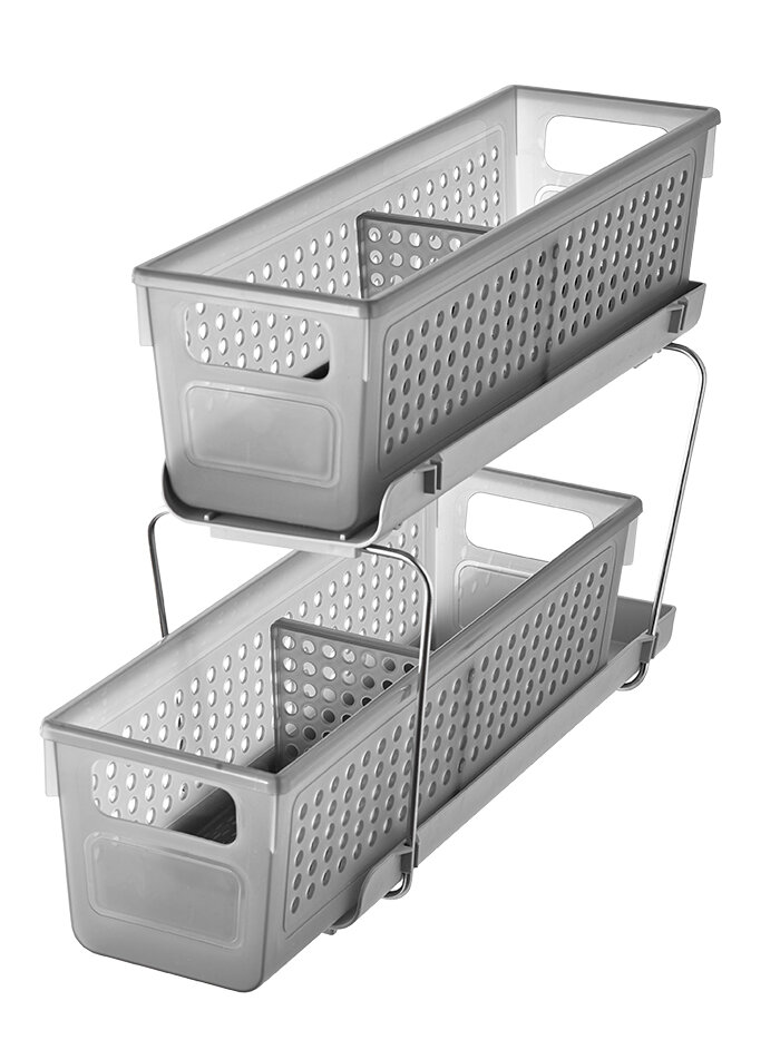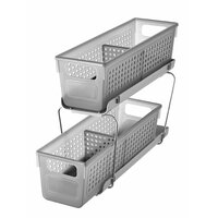 2-х уровневый многофункциональный органайзер - это практичное решение для хранения вещей в кухонных шкафах или кладовых, под раковиной в ванной, на столах или в других местах, чтобы поддерживать чистоту и порядок в вашем доме или офисе. Компактный дизайн: имеет 2 съемные корзины для легкого доступа к вашим вещам и 2-е регулируемые перегородки, которые помогают еще больше разделить ваши предметы для удобной индивидуальной организации. Хранение под раковиной или спальне: наведите порядок в ванной комнате, разместив под раковиной средства для ванны или наведите порядок в сложных для организации вещей в спальне, таких как электроника, поделки и лекарства. Организация: используйте в качестве настольного органайзера для различных канцелярских товаров, чтобы использовать неиспользуемое вертикальное пространство или любое другое место на кухне для чистящих средств, специй, закусок и многого другого. Размер конструкции: 36х13х28см; размер корзин: 36х10,7х10см.