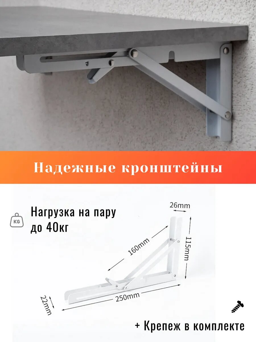 Кронштейны из металла обеспечивают стойкость и долговечность конструкции, а столешница из ЛДСП легко чистится и подходит для повседневного использования.