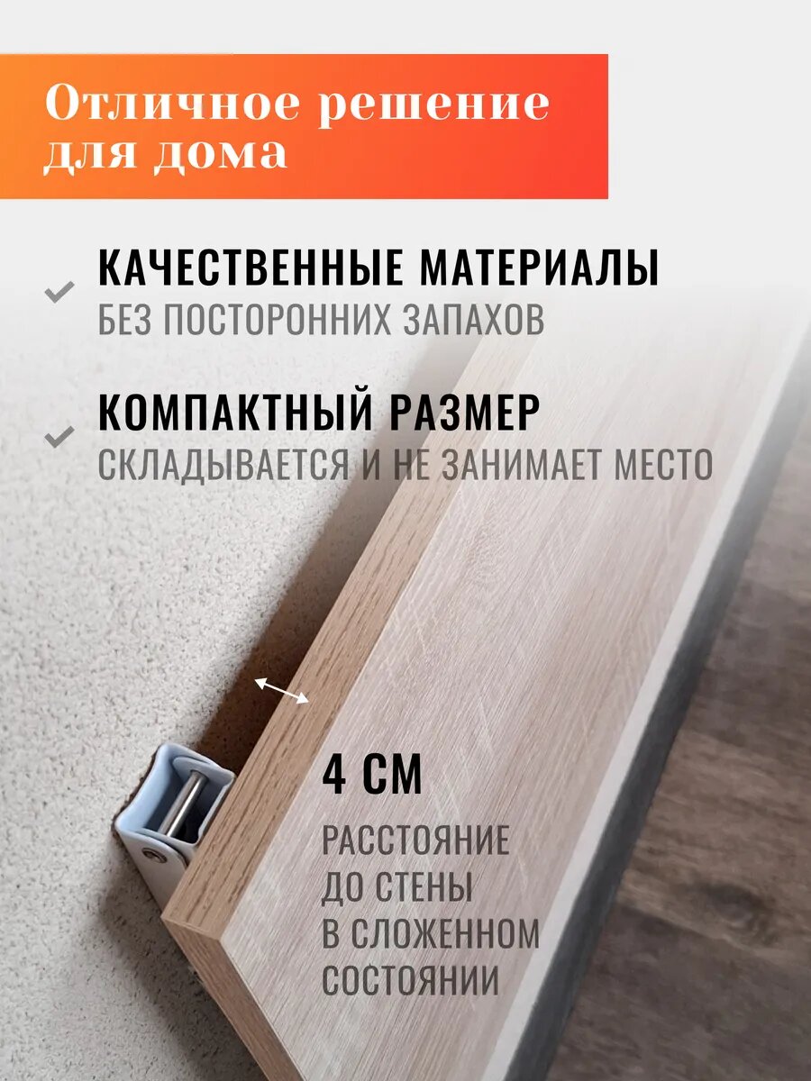 Благодаря откидному механизму, столик легко складывается, экономя ценное пространство.