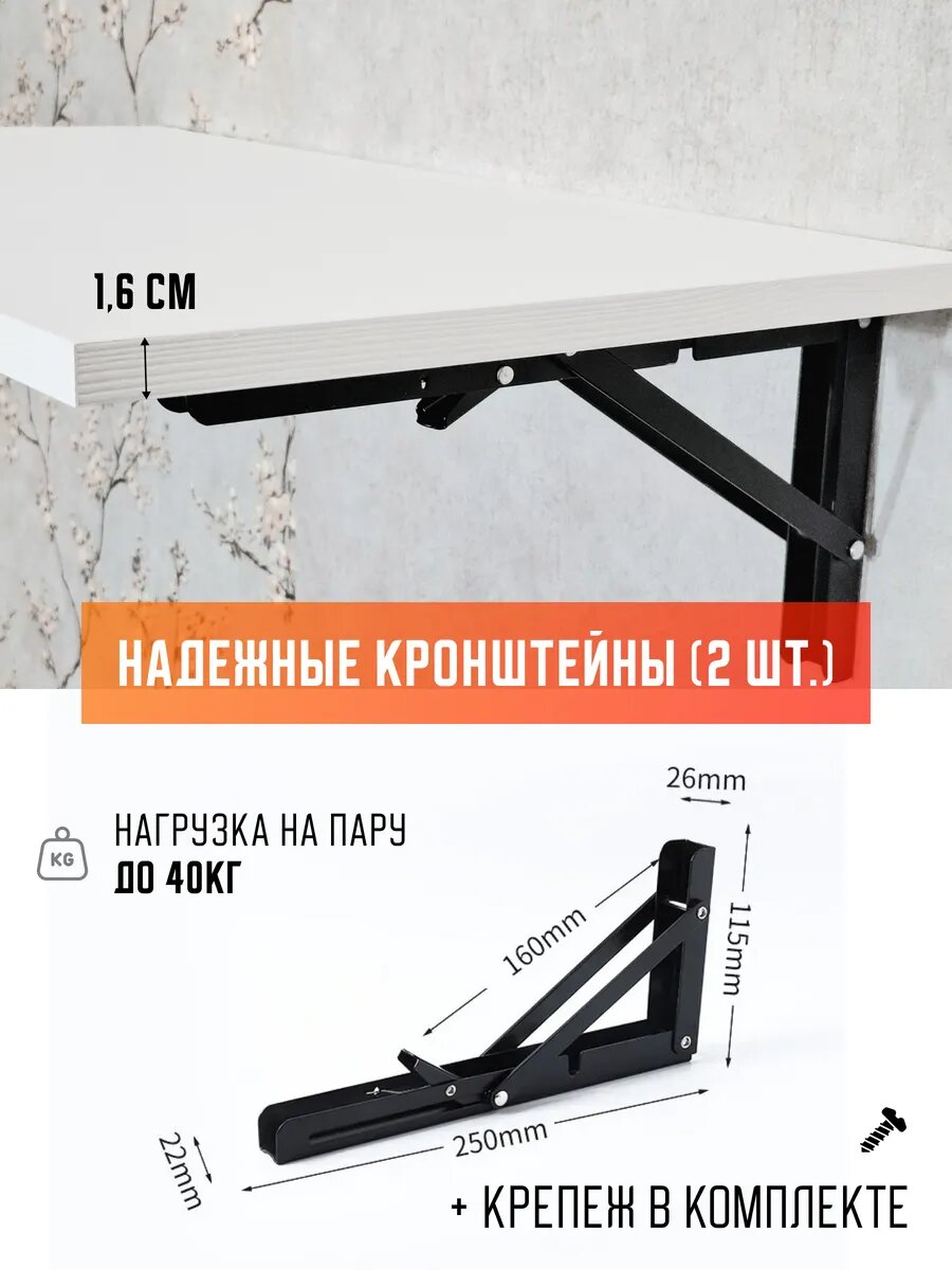 Полка складная универсальная / Столик настенный откидной, 60х30см, цвет белый: сравнение цен, характеристики, фото, актуальное наличие и цены.