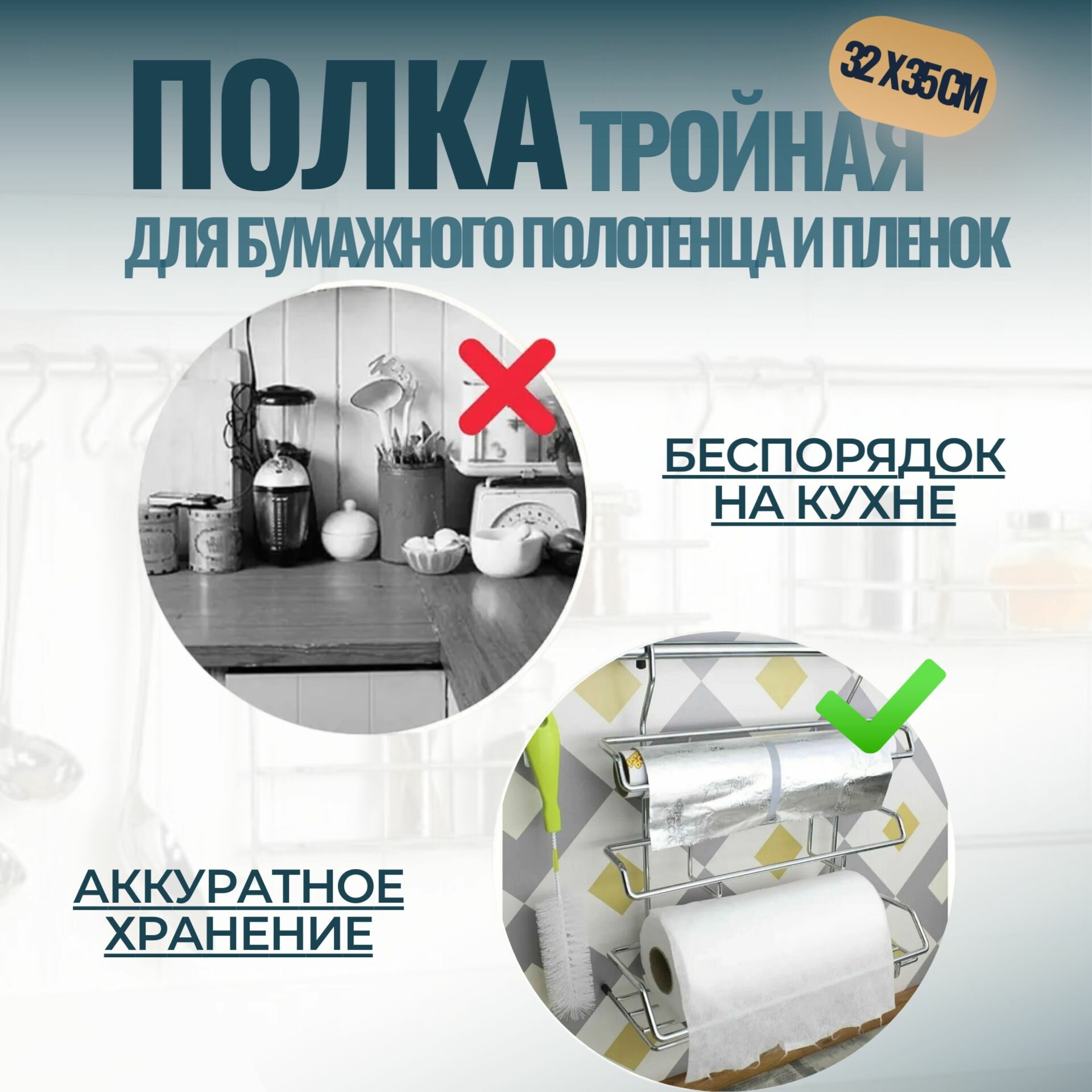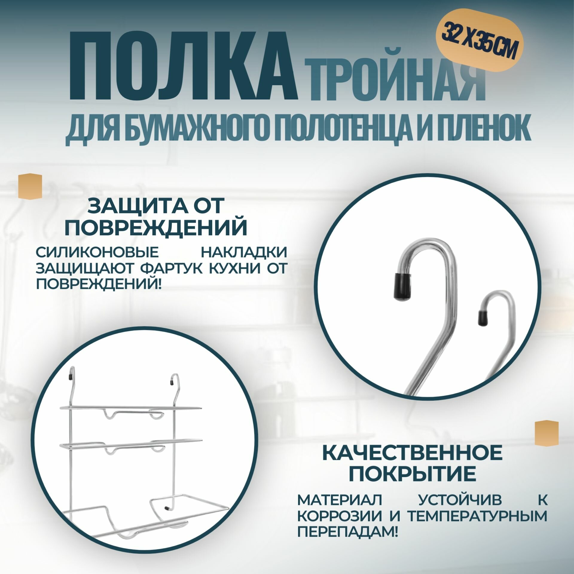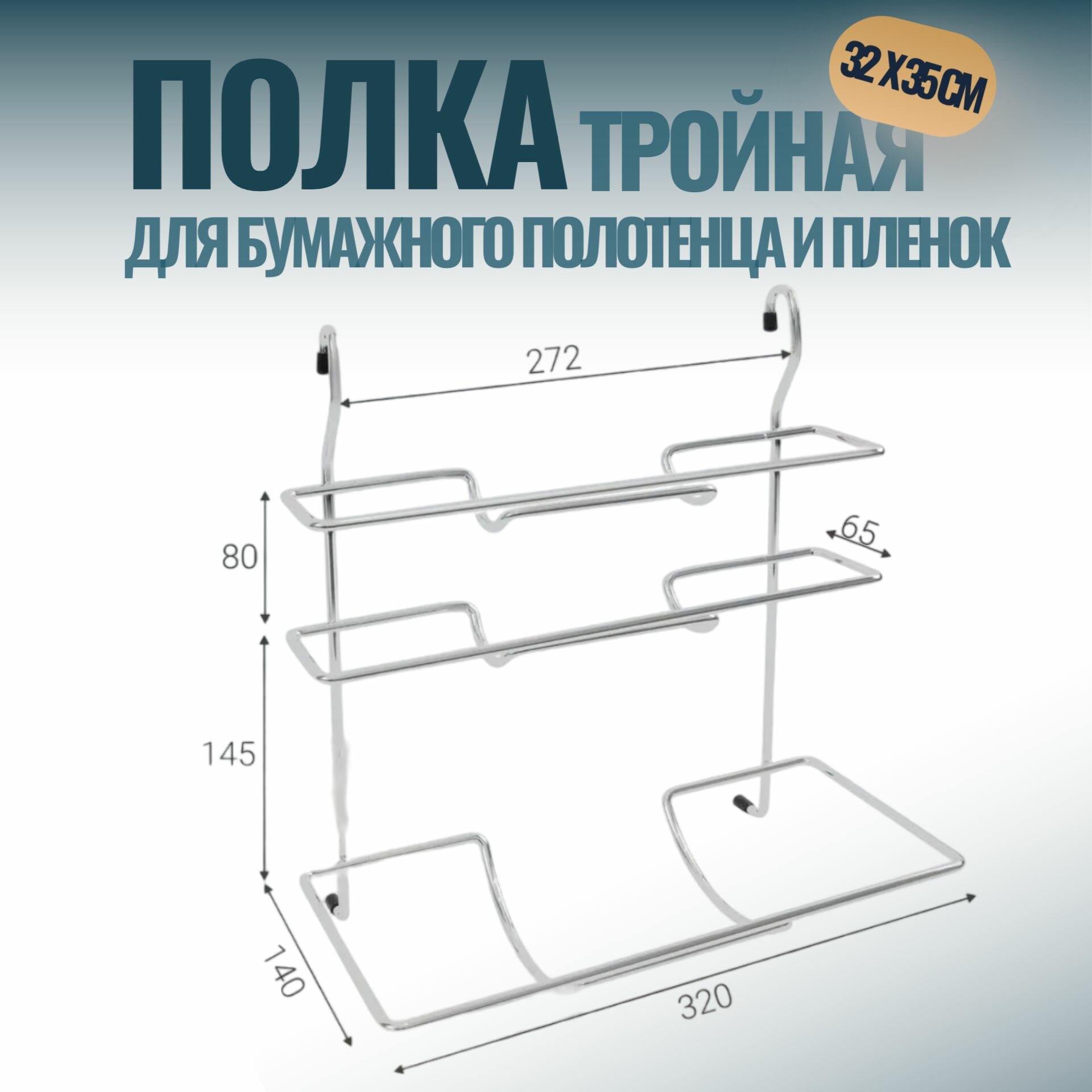 Полка тройная на рейлинг для бумажных полотенец и пленок 32x14x35 см, хром, 1 шт.: сравнение цен, характеристики, фото, актуальное наличие и цены.
