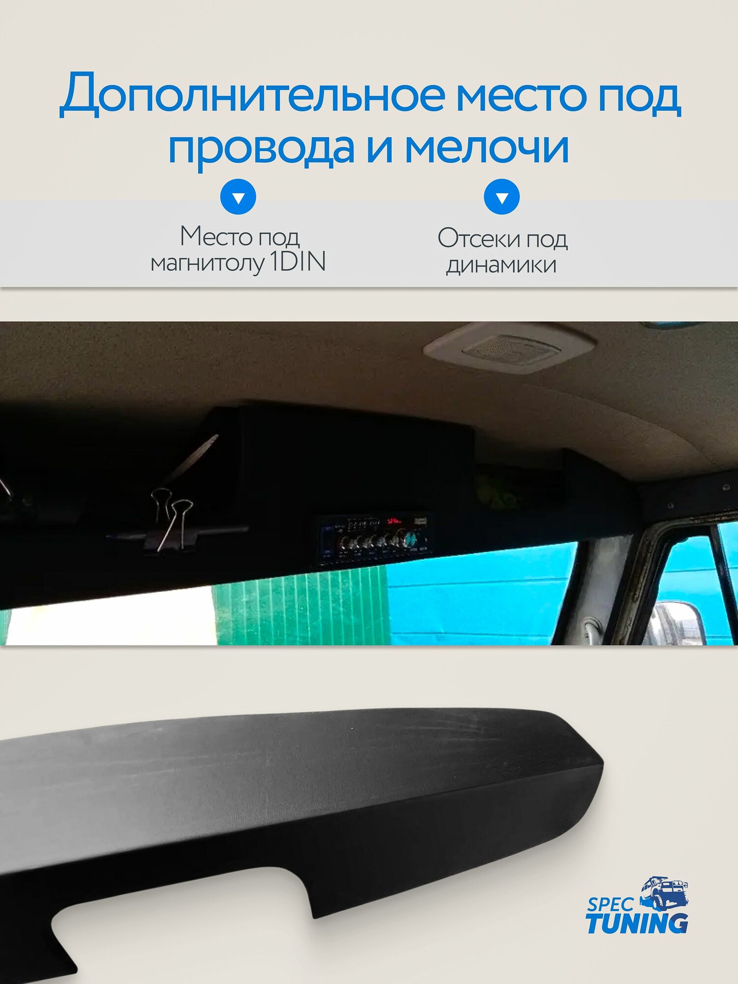 - Удобство: Специально разработанная для установки в УАЗ 469, полка обеспечивает легкий доступ к магнитоле и динамикам.
