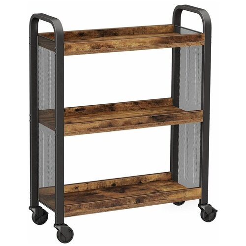«Полка универсальная, ДСП+сталь, 3 секции, 66х26х85 см, на колесах, коричневый, черная, Vasagle, Лофт, LRC66BX»