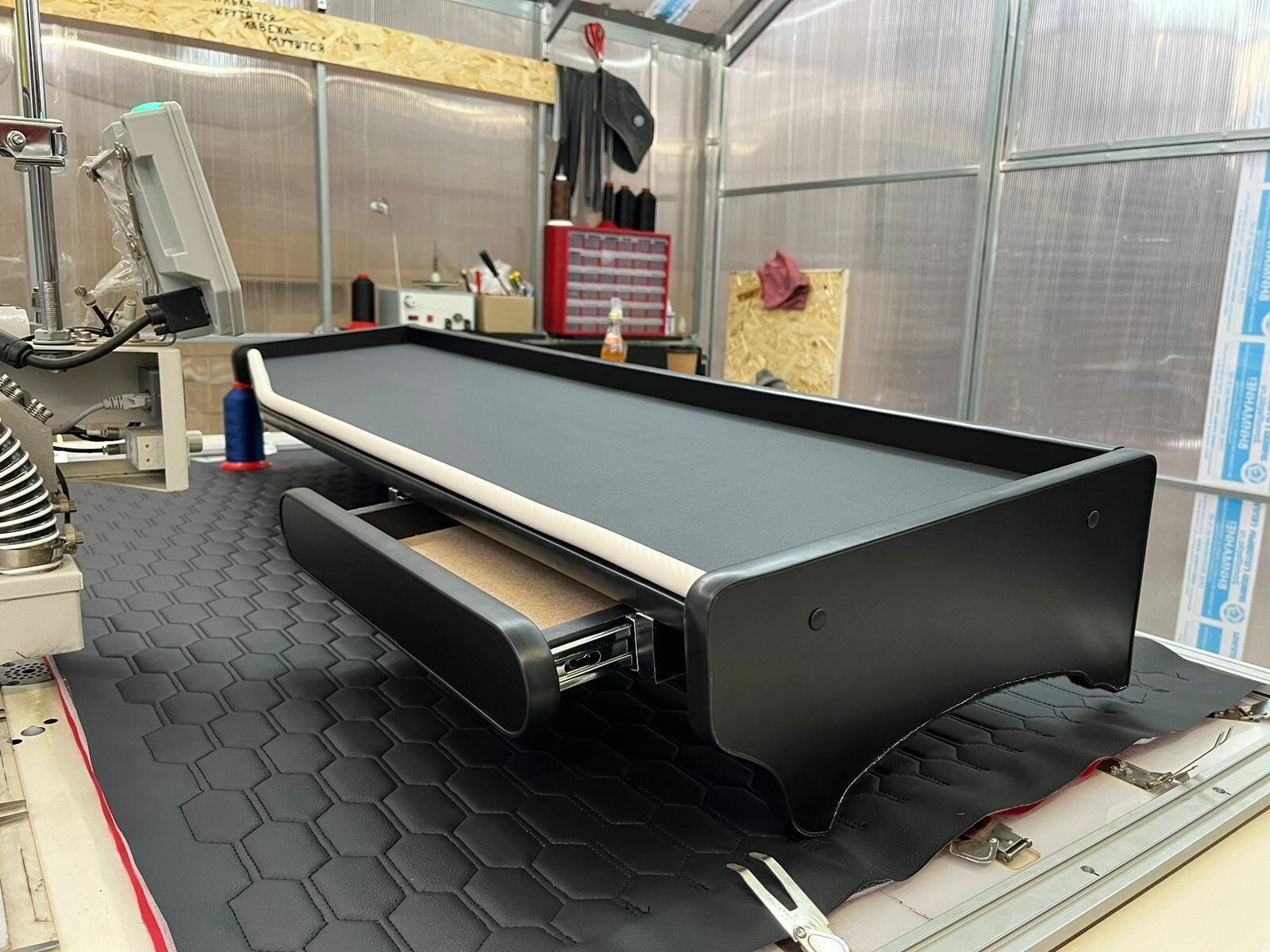 Купить Полка в кабину для грузовика SCANIA 4 1999-2006г. в. Черная экокожа Белая труба Ящичек с доставкой по всей России.