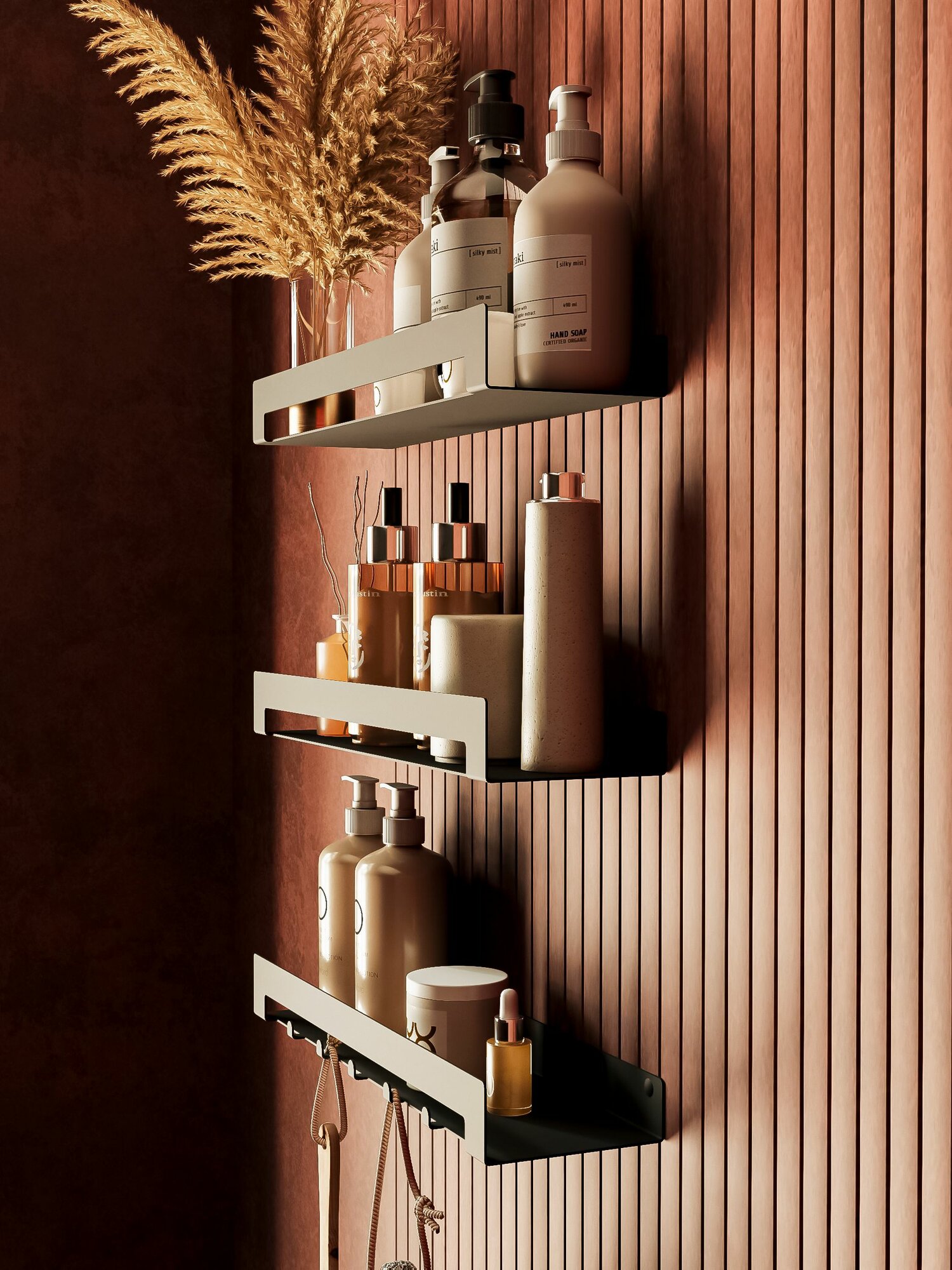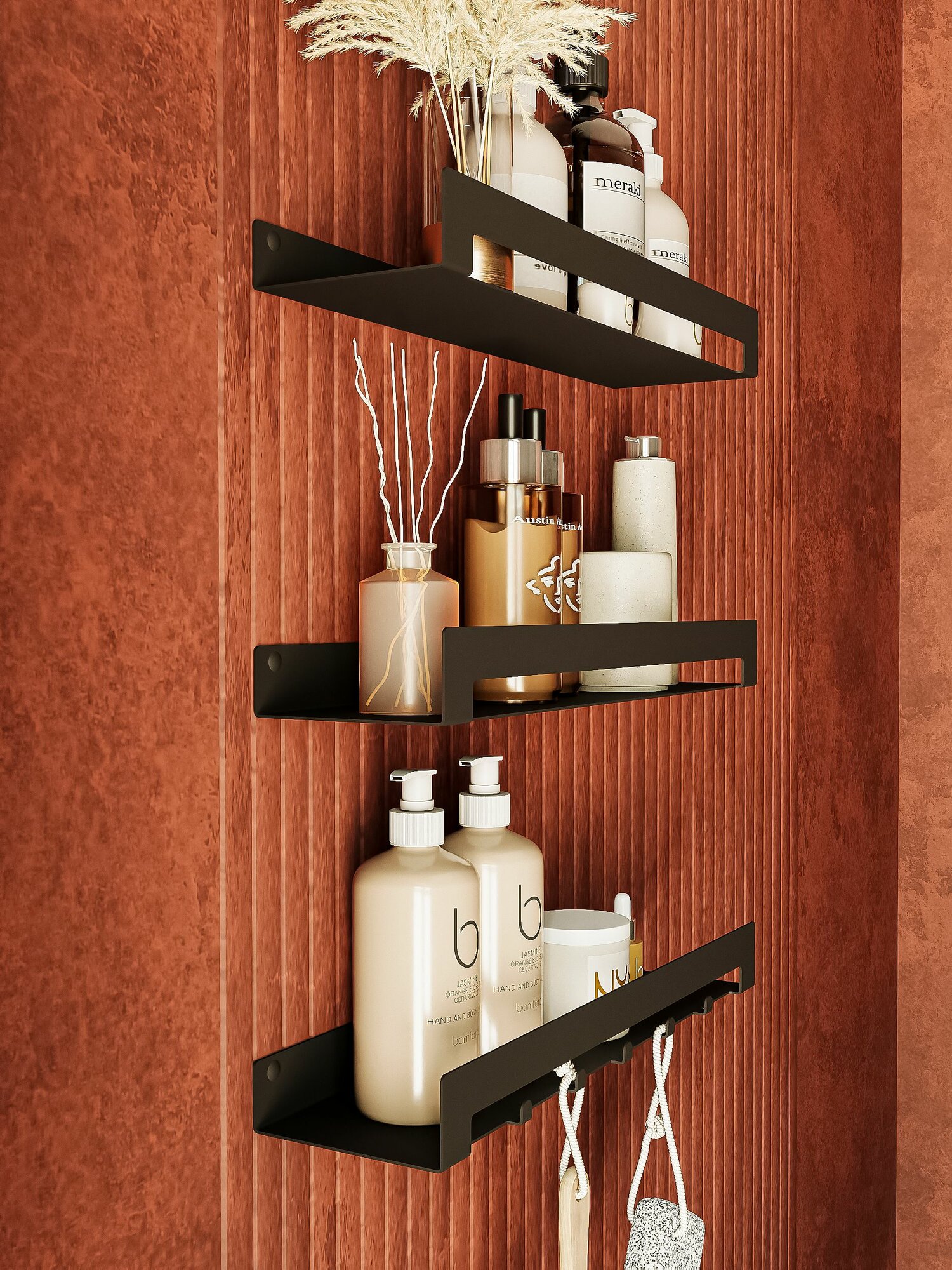 Полки для ванной настенные с крючками для полотенец, крепление на саморезах, набор из 3 шт; цвет черный, 40х11 см: сравнение цен, характеристики, фото, актуальное наличие и цены.