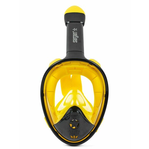 Полнолицевая маска для плавания Sargan «планета 2.0» Высокое качество всех комплектующих, высокий конструкционный уровень, продуманная эргономика, стильный дизайн, огромный выбор цветовых комбинаций и лучшее сочетание цена/качество – вот что отличает полнолицевые маски для плавания Sargan «планета» от прочих им подобных. Полнолицевая маска для плавания с интегрированной трубкой и возможностью полноценно дышать под водой одновременно ртом и носом (как на суше) – это лучшее решение для тех, кто устал бороться с постоянно подтекающей водой - то в глаза через отдельную маску, то в рот через отдельную трубку. Большой плюс таких масок для плавания – это возможность противостоять запотеванию лицевого стекла изнутри за счет конструкционного разделения внутренних объемов на две части – на зону зрения и зону дыхания, в которой нос и рот ныряльщика находятся в общем объеме. Силикон масок гипоаллергенный – не вызывающий аллергии: либо черный, либо окрашен в приятные глазу активные и стильные «дизайнерские» цвета. Окраска не дает силикону желтеть и гарантирует маске отличный внешний вид на долгие годы. Огромное внешнее «остекление», делающее маску для плавания Sargan «планета 2.0» похожей на лицевую часть космического скафандра, выполнено из прочного поликарбоната. Широкий обзор по вертикали и горизонтали в среднем намного выше стандартных масок. Верхняя часть трубки оснащена сухим клапаном, не дающим воде заливаться в трубку при погружении головы ниже уровня воды. В нижней части маски есть дополнительный клапан, позволяющий избавиться от попавшей вовнутрь воды резким выдохом. Маска для плавания с трубкой Sargan «планета» имеет 3 размера: KIDS, S-M, L-XL и более 20 цветовых комбинаций на любой вкус. Выбор размера осуществляется в зависимости от расстояния между переносицей и нижней частью подбородка: примерно, до 10см – KIDS, 10-12см – S-M, 12см и более – размер L-XL. Широкие и мягкие эластичные ремни, идущие через затылок крест-накрест, легко регулируются под любой объем головы и будут мягко и комфортно удерживать маску на голове с выбранной вами прижимающей силой. В транспортировочном состоянии трубка отделена от маски. Для присоединения ее нужно глубоко надеть на прокладку о-ринг на выступающей вверху части маски и немного повернуть по часовой стрелке до полной фиксации. Отсоединение – в обратном порядке. К полнолицевой маске для плавания Sargan «планета» в комплект вы получите: