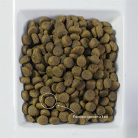 Гарантируемый анализ: сырой протеин 30%, сырой жир 16%, сырая зола 7,5%, сырая клетчатка 2,5%, кальций 1,6%, фосфор 1%, глюкозамин 300 мг/кг, хондроитин 100 мг/кг.