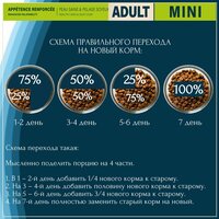 Переход с другого корма на Prestige Adult Mini следует осуществлять постепенно, последовательно увеличивая часть Prestige Adult Mini. Корм можно давать как в сухом, так и в увлажнённом водой виде. У собаки всегда должен быть доступ к свежей питьевой воде.