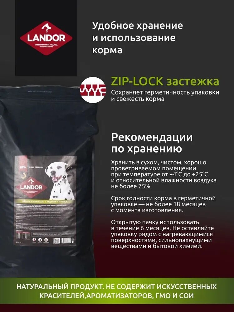LANDOR Medium/ Maxi adult - полнорационный сухой корм для взрослых собак средних и крупных пород c индейкой и ягненком 3 кг. Благодаря большому количеству белка животного происхождения, корм хорошо усваивается и насыщает организм питомца аминокислотами. LANDOR Mini adult не содержит пшеницу, а значит подойдёт питомцам с пищевой непереносимостью пшеничного глютена. Благодаря комбинации полиненасыщенных жирных кислот, витаминов и минералов, кожа и шерсть питомца приобретают здоровый и ухоженный вид. В составе корма присутствуют глюкозамин и хондроитин, необходимые для формирования, питания и восстановления хрящевой ткани.