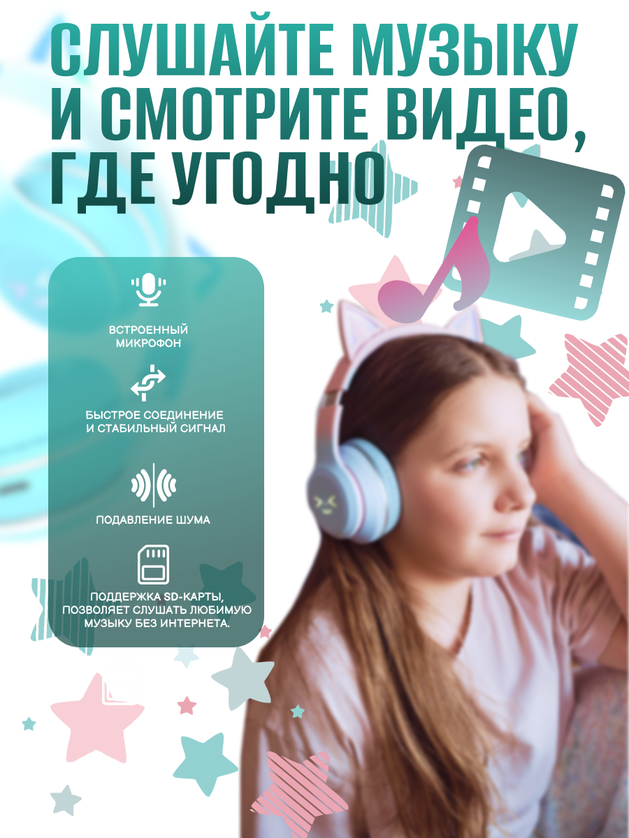 Купить Полноразмерные наушники для девочек с ушками, светящиеся More choice HW25kids бирюзовые с доставкой по всей России. Полноразмерные наушники для девочек с ушками, светящиеся More choice HW25kids бирюзовые: сравнение цен, характеристики, фото, актуальное наличие и цены.