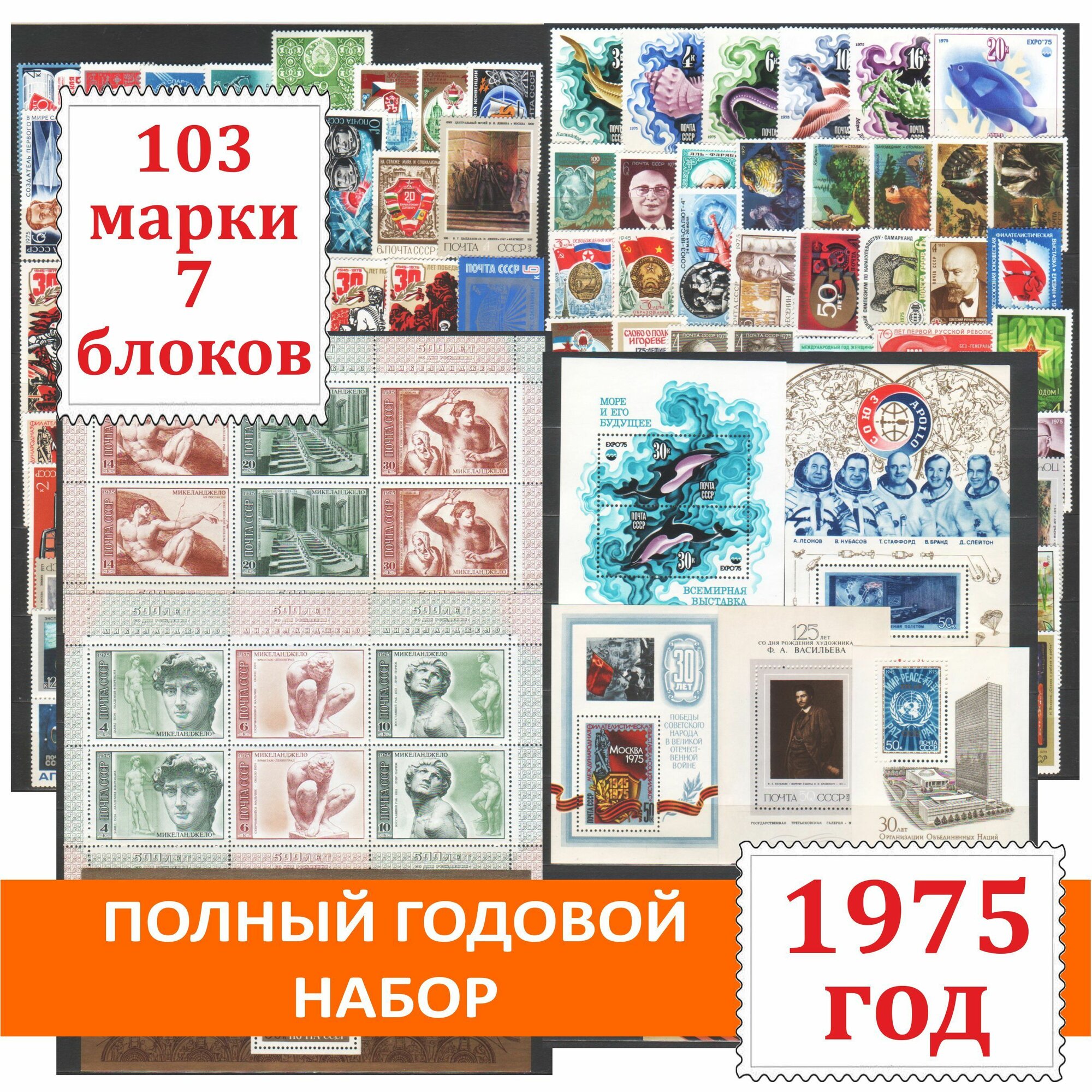 Купить Полный годовой набор негашеных почтовых марок СССР 1975 года. 103 марки + 7 блоков с доставкой по всей России. Полный годовой набор негашеных почтовых марок СССР 1975 года. 103 марки + 7 блоков: сравнение цен, характеристики, фото, актуальное наличие и цены.