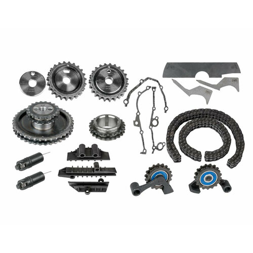 В нем собраны все необходимые элементы, для полной замены всех узлов и деталей ГРМ включая транспортир для установки фаз ГРМ 406/405/409 и ЗМЗ Pro, прокладки, успокоители и звёздочки ГРМ.