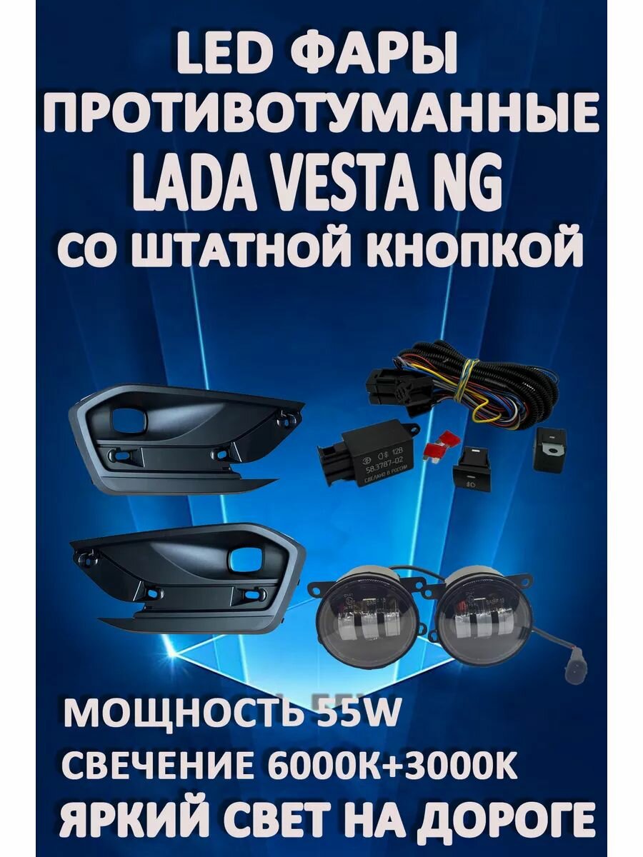 Купить Полный комплект светодиодных LED противотуманных фар Lada Vesta NG (2022-2024) со штатной кнопкой 50 Вт (2 режима) с доставкой по всей России. Полный комплект светодиодных LED противотуманных фар Lada Vesta NG (2022-2024) со штатной кнопкой 50 Вт (2 режима): сравнение цен, характеристики, фото, актуальное наличие и цены.