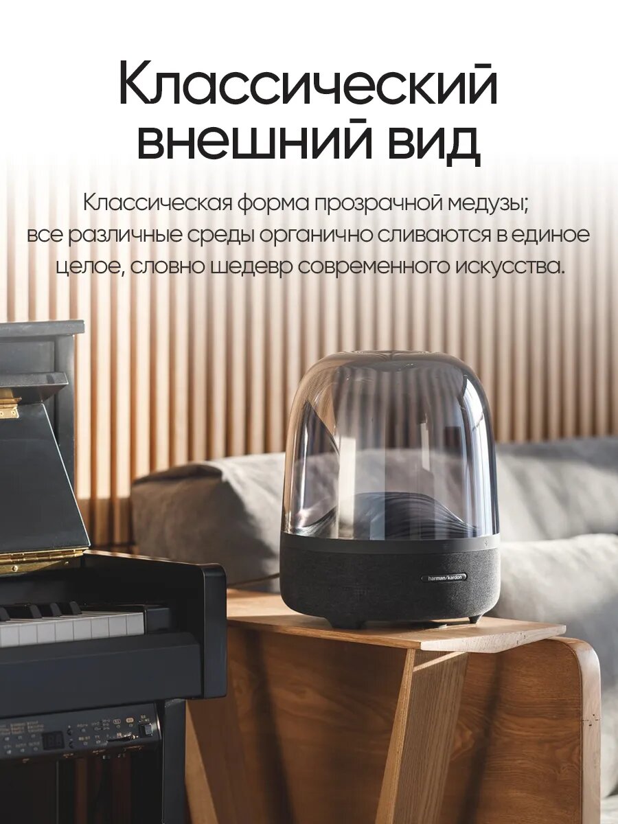 Aura Studio 3 – это стильная и мощная акустическая система, в которой сочетаются все плюсы предыдущих моделей серии и новшества от Harman/Kardon. Модель получила эффектную подсветку и может похвастаться большей мощностью, а безупречное качество звука и эффектный дизайн остались неизменными.