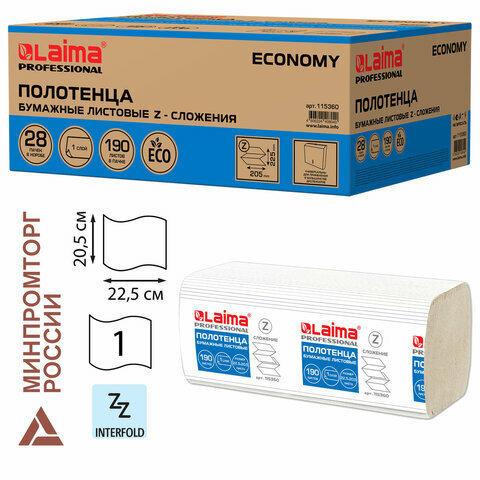 Полотенца бумажные 190 шт, комплект 28 пачек, LAIMA ECONOMY (H2), Z-сложение, натуральный цвет, 22,5х20,5 см, 115360: сравнение цен, характеристики, фото, актуальное наличие и цены.