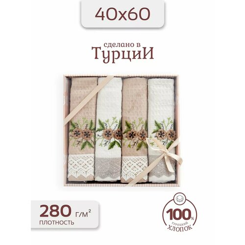 Купить Полотенца махровые кухонные с вышивкой 4шт 30х50 вафельные с доставкой по всей России.