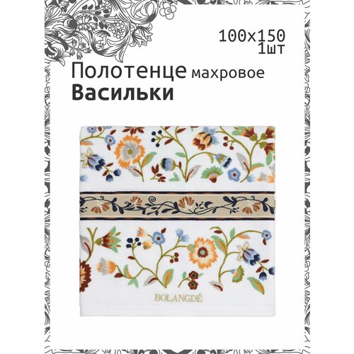 Полотенце банное(пляжное) махровое "Васильки" размером 100х150 см синего цвета. Модель входит в цветочную коллекцию BOLANGDE.