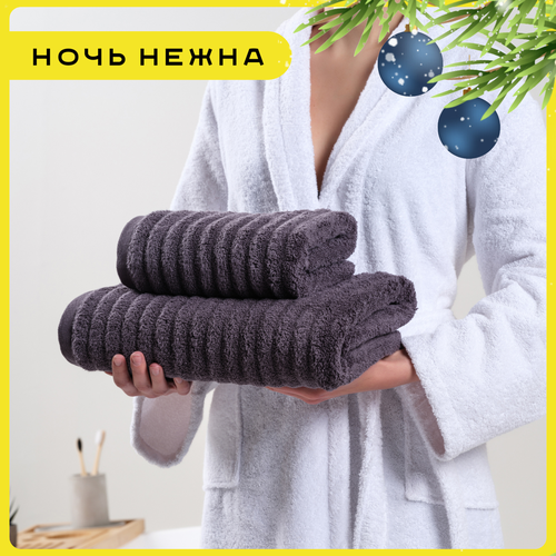 Купить Полотенце банное махровое набор 2 шт графит с доставкой по всей России.