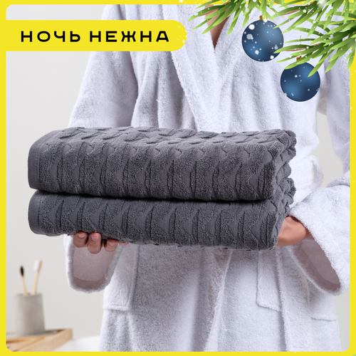 Купить Полотенце банное махровое набор 2 шт графит с доставкой по всей России.