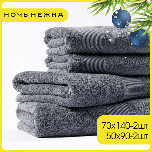 Купить Полотенце банное махровое Ночь Нежна набор 4 шт. графит с доставкой по всей России.