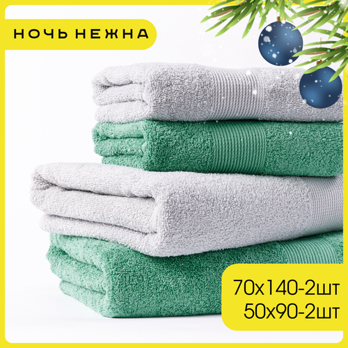 Полотенце банное махровое Ночь Нежна набор 4 шт. серый, зеленый: сравнение цен, характеристики, фото, актуальное наличие и цены.